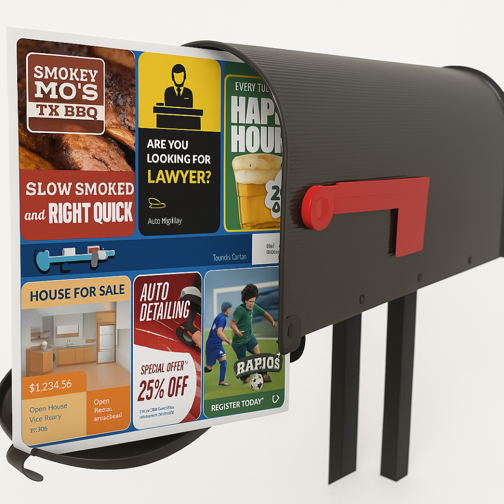 Local customers see your business right in their mailbox—no social media algorithms, no noise, just real, physical visibility.